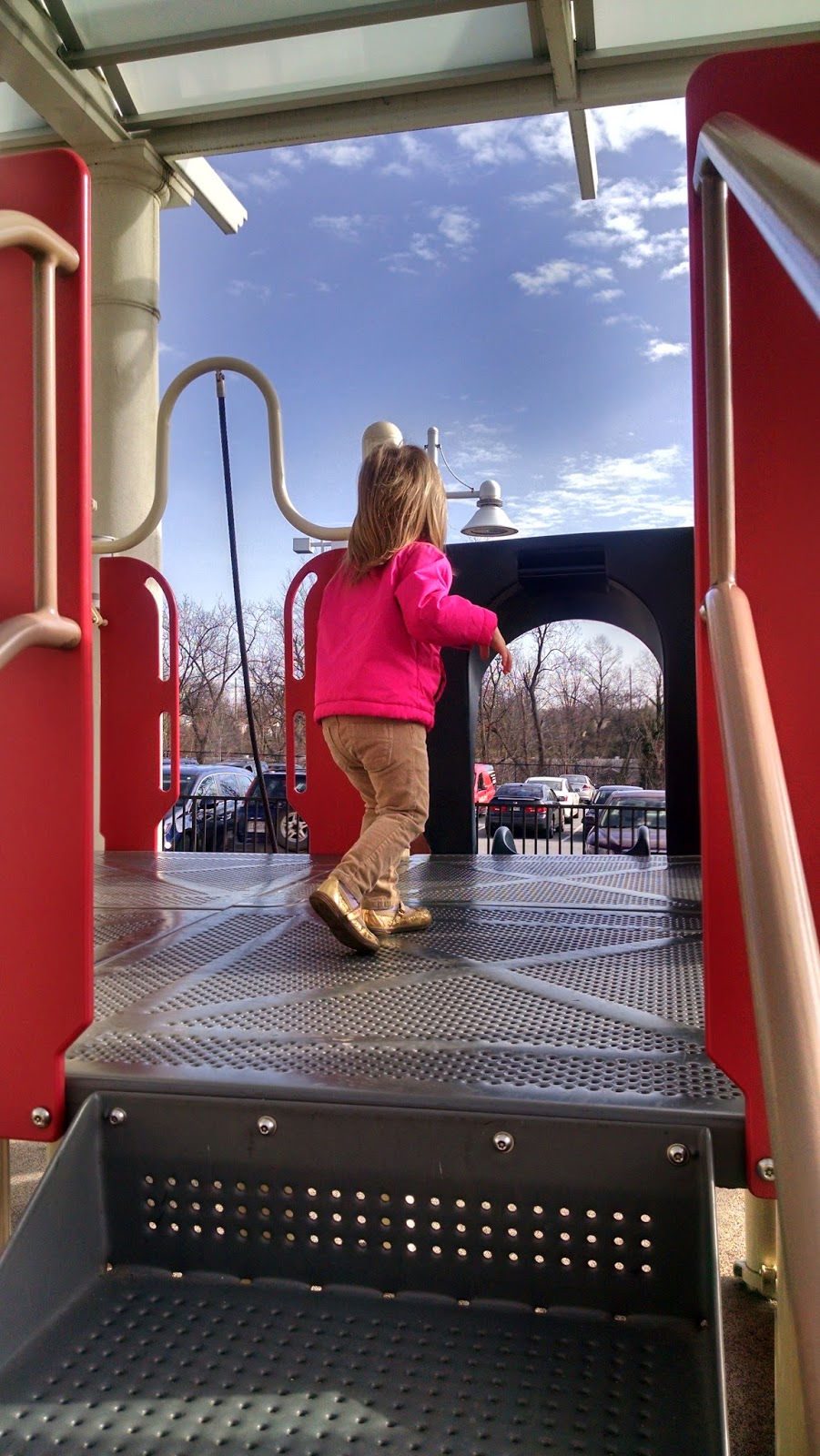 I had to exchange my ski pants at the Columbia store and the girls wanted to play on the playground next to the store. So... in exchange for being good in the store, I let them play for 10 minutes in the 45 degree weather. :)