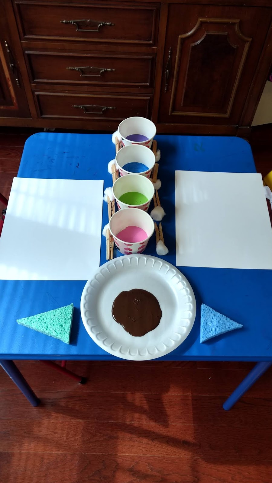 Later in the afternoon, the girls painted ice cream cones with sponges and cotton balls.